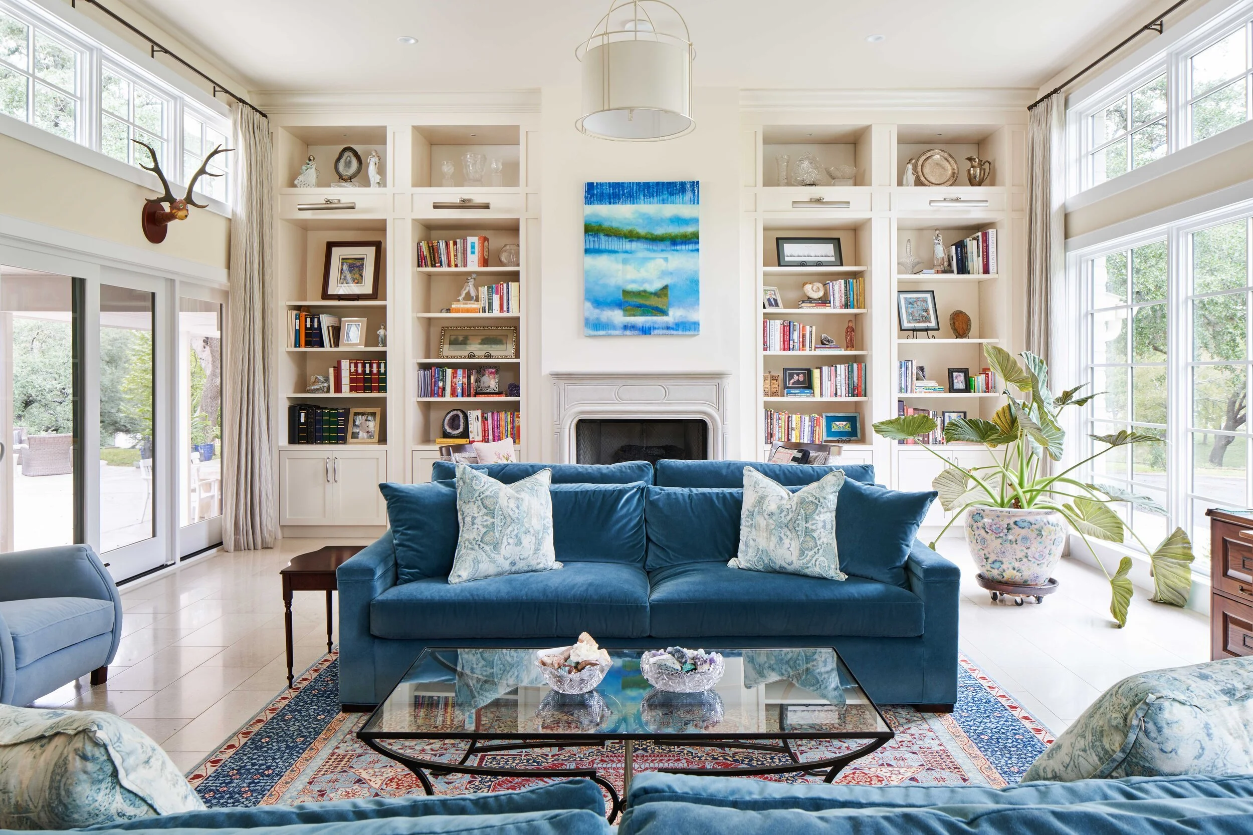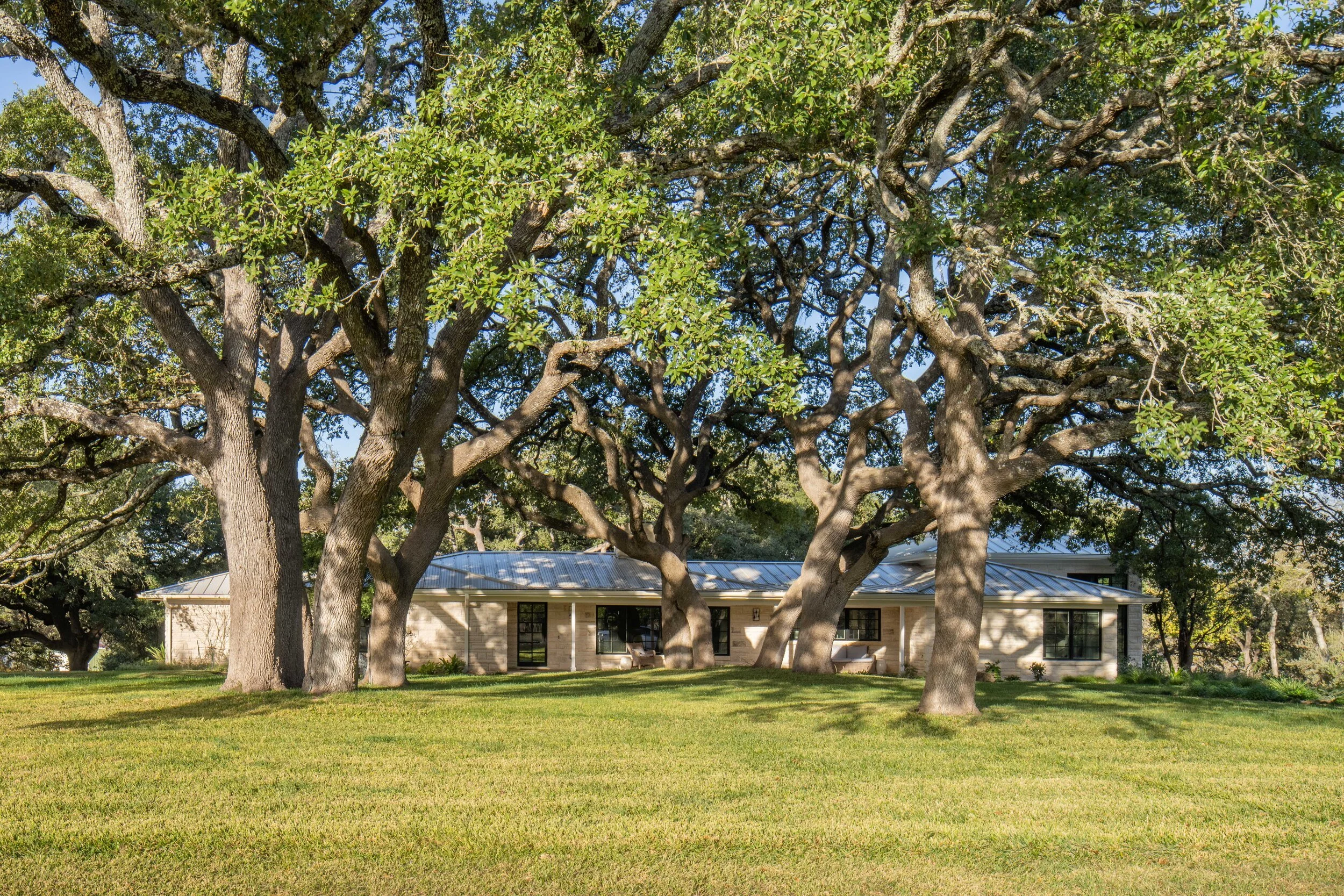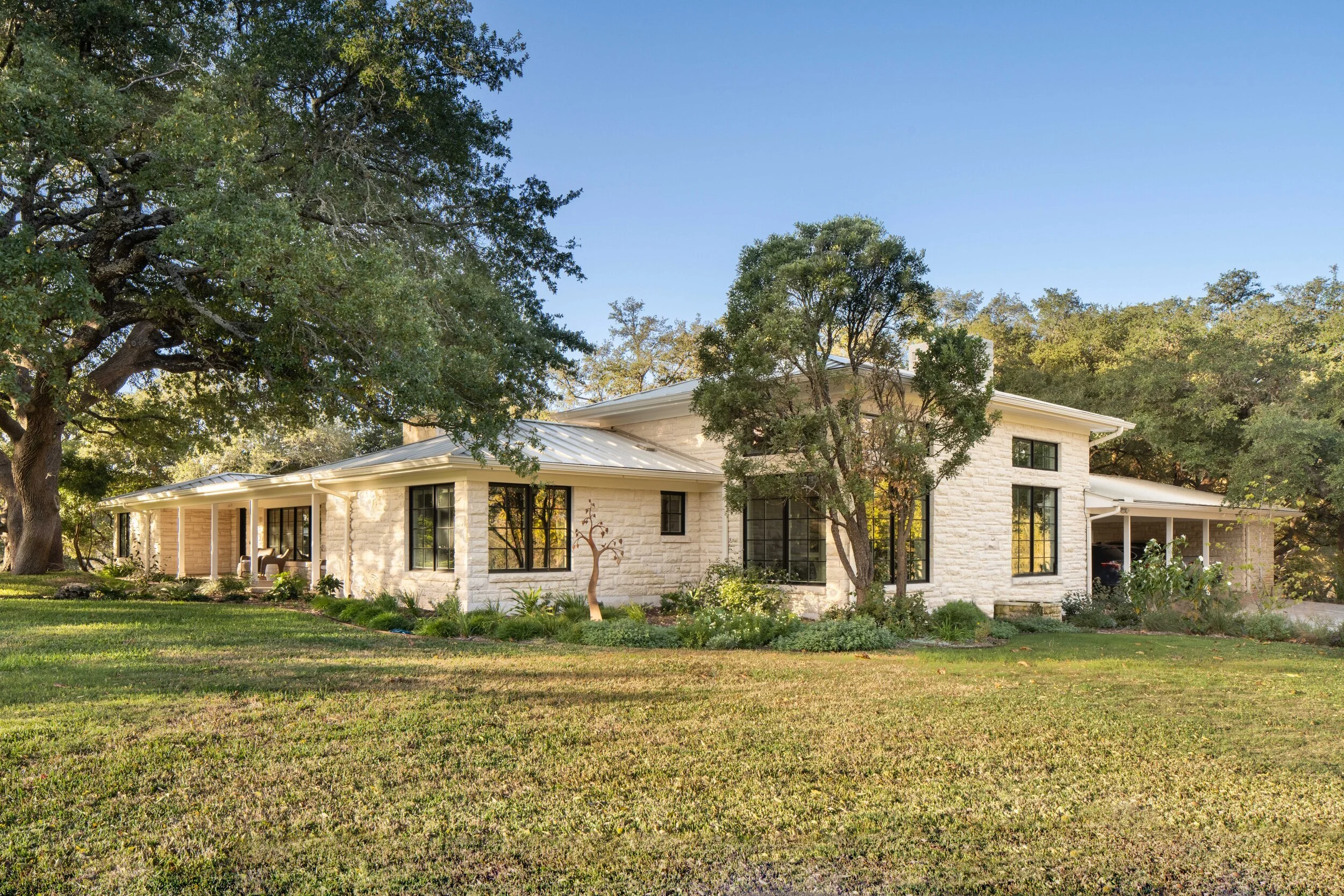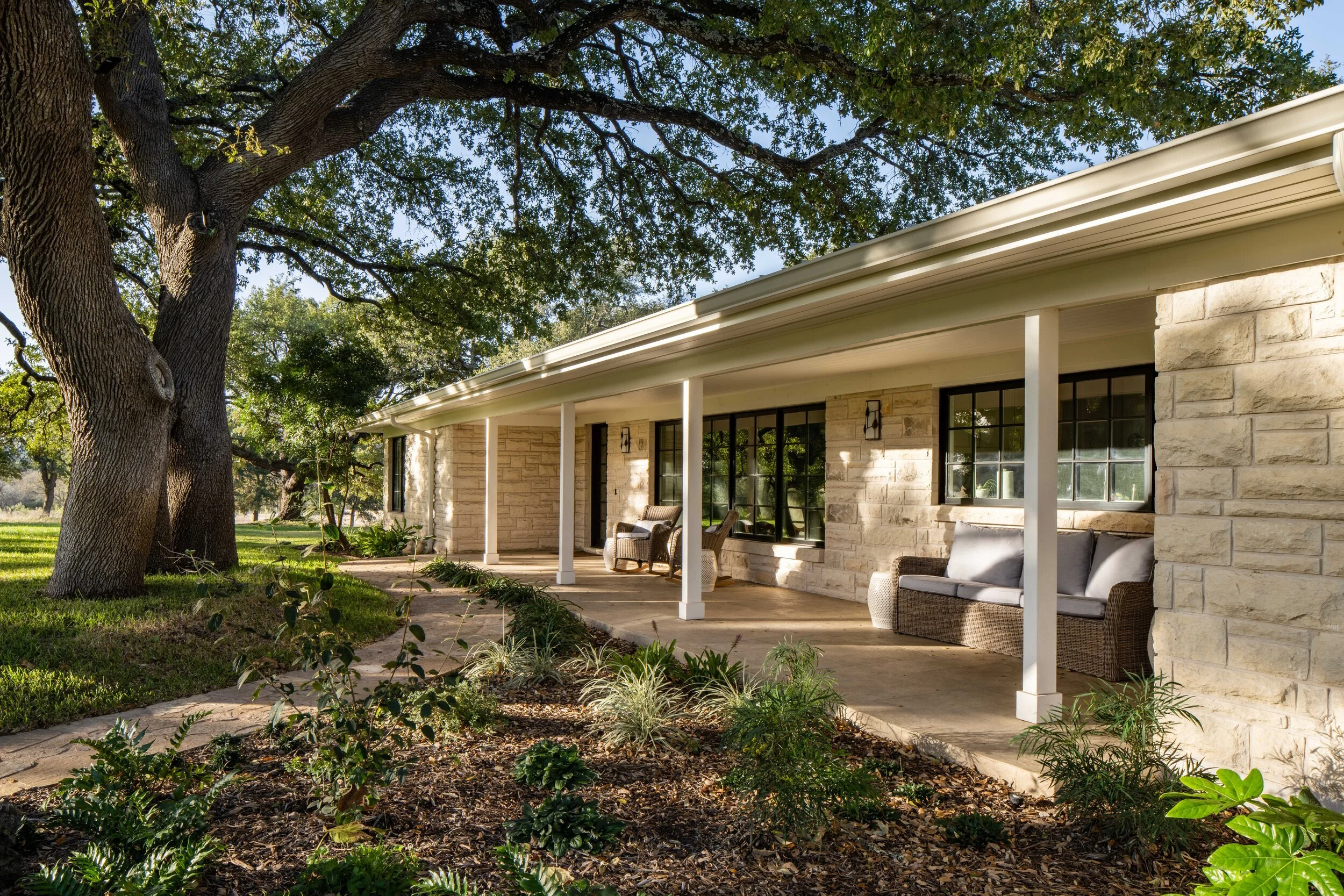 The old layout featured closed-off rooms and small spaces. So, our team of Austin architects gave it a complete overhaul while still highlighting the courtyard at the back of the home. Only one bedroom and bathroom stayed in the same location on the floor plan. Everything else was redesigned to wrap around the courtyard, optimizing views of the live oaks and a creek that runs through the property. We added a large living room with windows on three sides, creating a bright and airy space for gatherings. In addition to open entertaining spaces, our architects designed a new primary suite with a walk-in closet, attached bath, courtyard access, and windows on all four sides of the bedroom to frame the beautiful scenery.